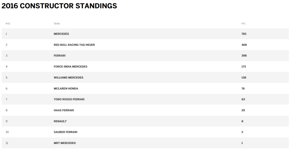 Konstruktørmesterskab 2016